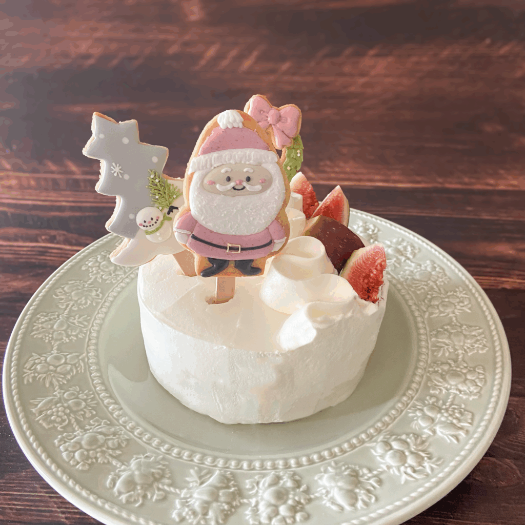 サンタさん、クリスマスツリー、リースのアイシングクッキーを作成していただいた後、デコレーションケーキを作っていただきます。